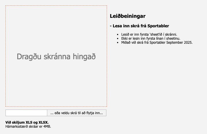 A) Lesa inn skrá frá Sportabler (Excel skjal sem er sótt þjálfaramegin).