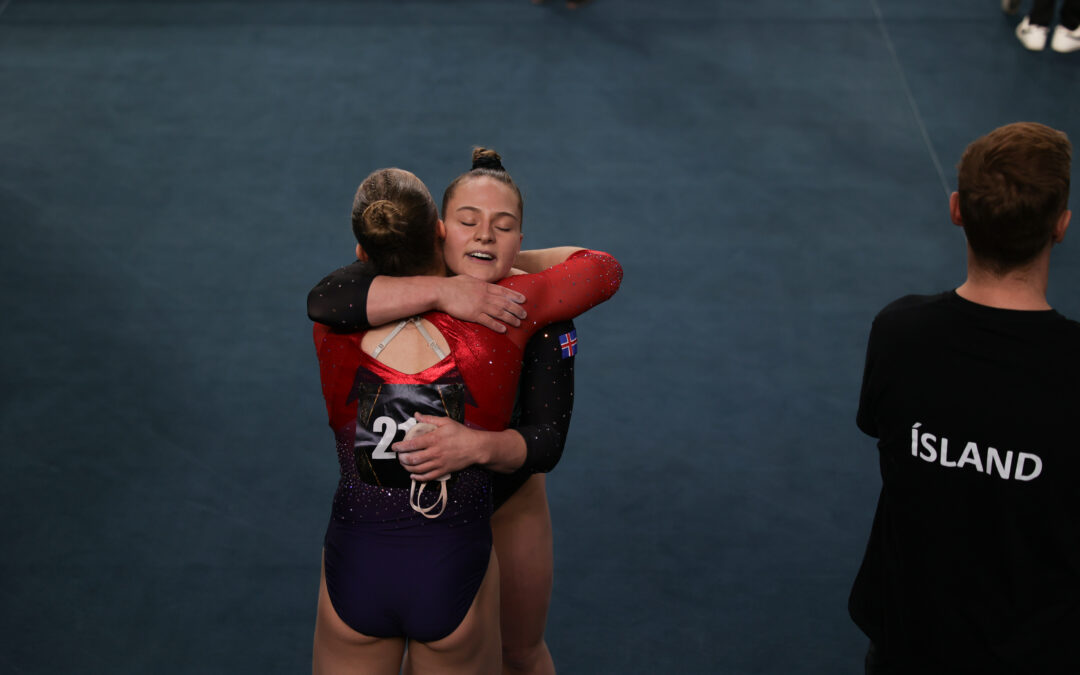 Í gær kepptu Thelma Aðalsteinsdóttir og Lilja Katrín Gunnarsdóttir á tvíslánni, gekk það vel og höfnuðu þær í 21. og 17. sætinu. Lilja Katrín í því 17. með 11.966 stig og Thelma í því 21. með 11.733 stig. Í dag tók svo gólfið og sláin við, Hildur Maja framkvæmdi glæsilega sláaræfingu, reyndi hún við erfiðan píróett sem varð henni að falli í dag, æfingin skilaði henni 11.466 og 18. sætinu, Hildur Maja er að koma sterk til baka eftir meiðsli sem hafa verið að hrjá hana síðastliðnar vikur.