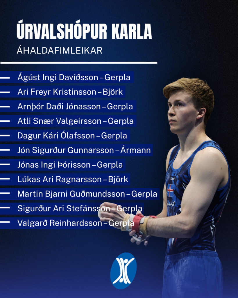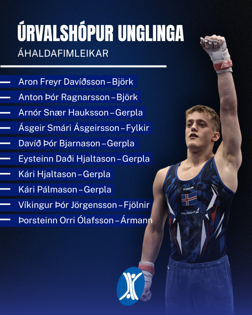 Fimleikasamband Íslands kynnir með stolti úrvalshópa fullorðna (kvenna og karla) og unglinga í áhaldafimleikum karla, innilega til hamingju.